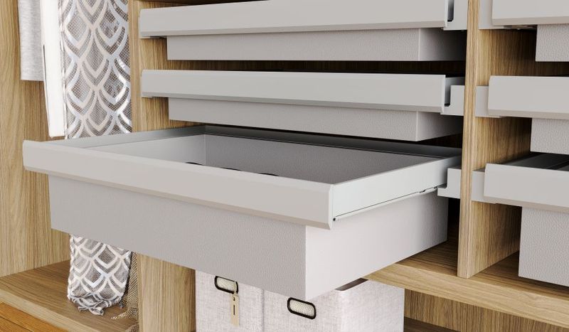 Ampla e robusta, perfeita para armazenar roupas ou peças grandes. Possui revestimento sintético, uma proteção extra para roupas e acessórios. Com extração total, amortecimento de impacto e instalação rápida por encaixe.