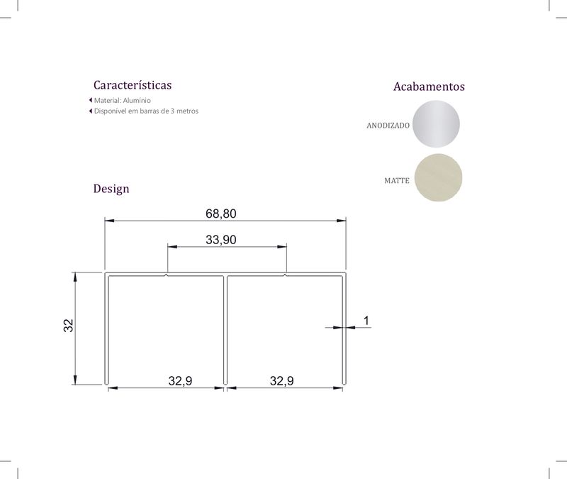 Perfil para instalação na parte superior do móvel. Foi desenvolvido exclusivamente para ser usado com o sistema de portas All Easy. Barras de 3 metros. Garantia de portas de correr com deslizamento suave e sem complicações!